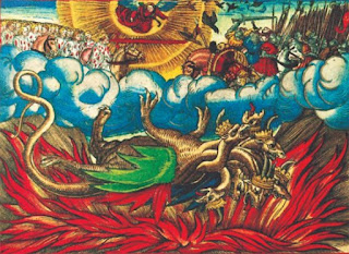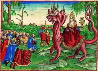 ‘Y vi a una mujer sentada sobre una bestia escarlata llena de nombres blasfemos; tiene siete cabezas y diez cuernos’