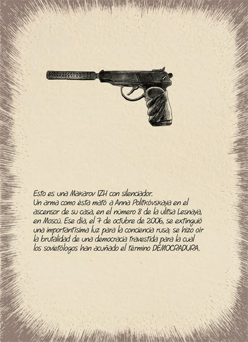 ilustrando visualmente los hechos de la guerra de Chechenia que la periodista