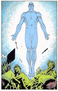 gracias a un arma inesperada: el Dr. Manhattan, un hombre que sufrió un